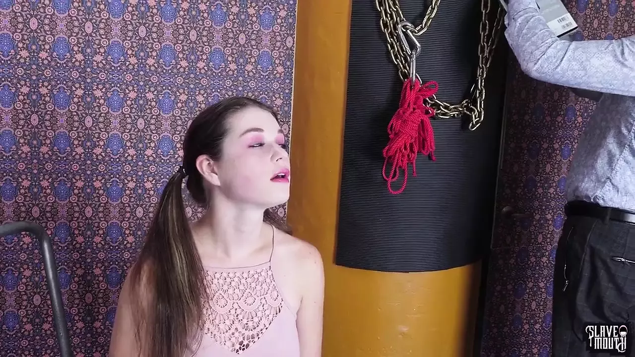 Deep throat gagging BDSM chick