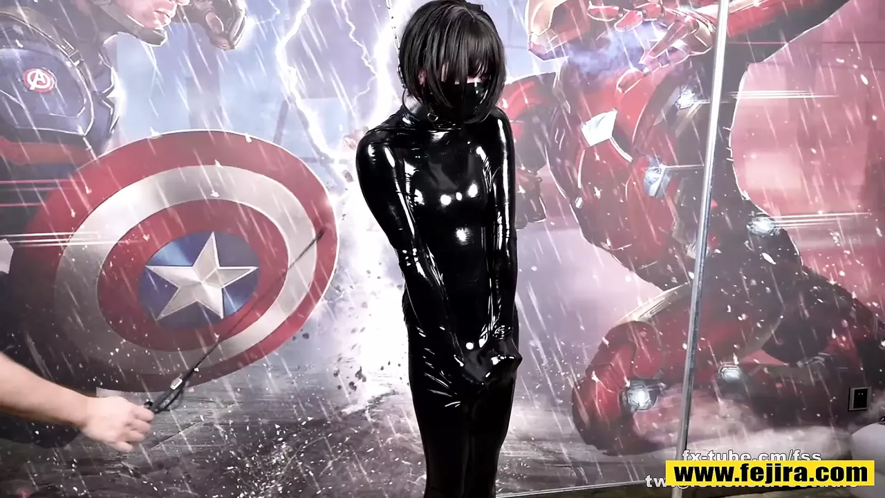 Fejira com Latex vacuum bag and mask femdom