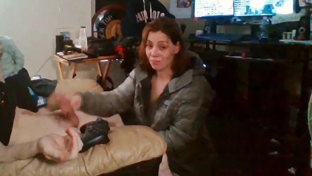 Heather Kane Milks in College Dorm wearing Gray Northface!