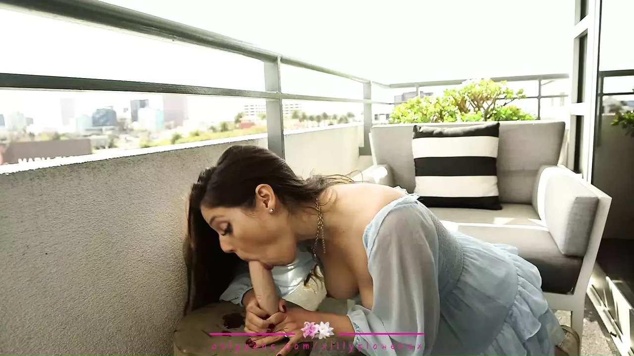 Horny Dirty Talking MILF Slut LilyFlowers Sucks and Fucks Dildo on Balcony