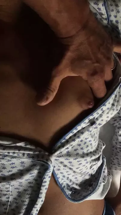 Stroking and stripping wife while she's on bed, showing tits