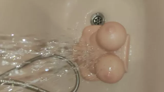 washing my new sextoy ( bouncing titties F cup) teaser short video (ASMR)